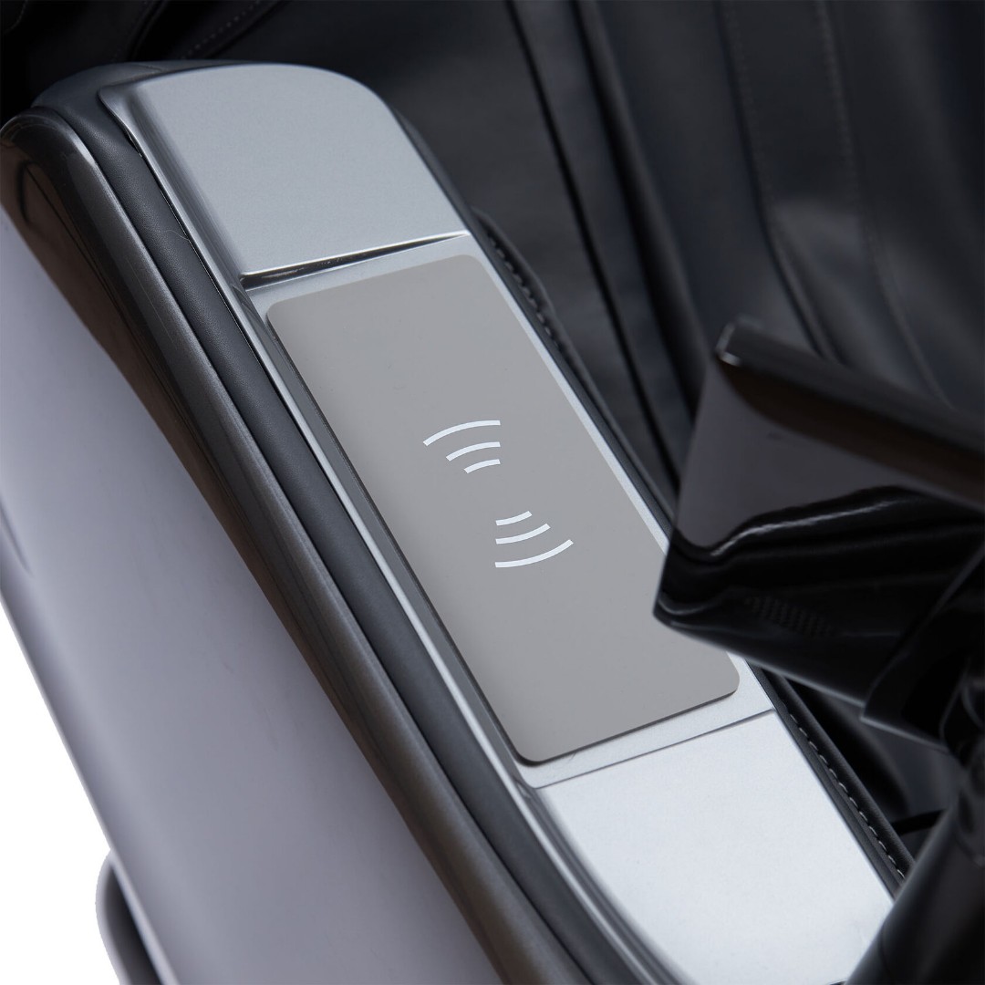 • В подлокотник встроена беспроводная зарядка для мобильного телефона
