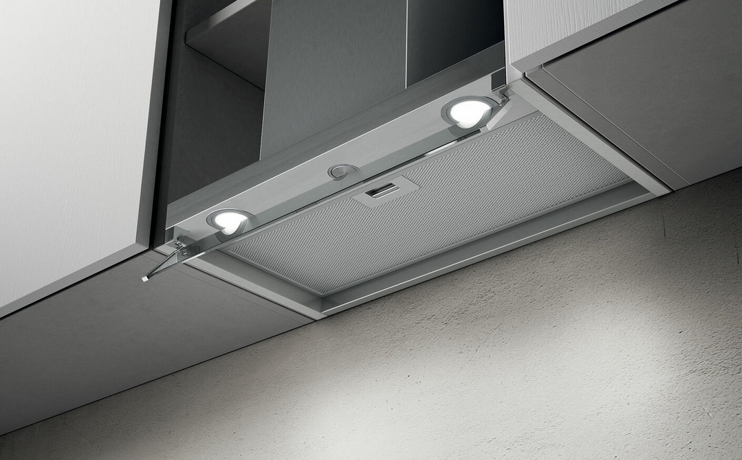 • Встраиваемая вытяжка предназначена для монтажа в навесной шкафчик, за счет чего обеспечивается аккуратный внешний вид.