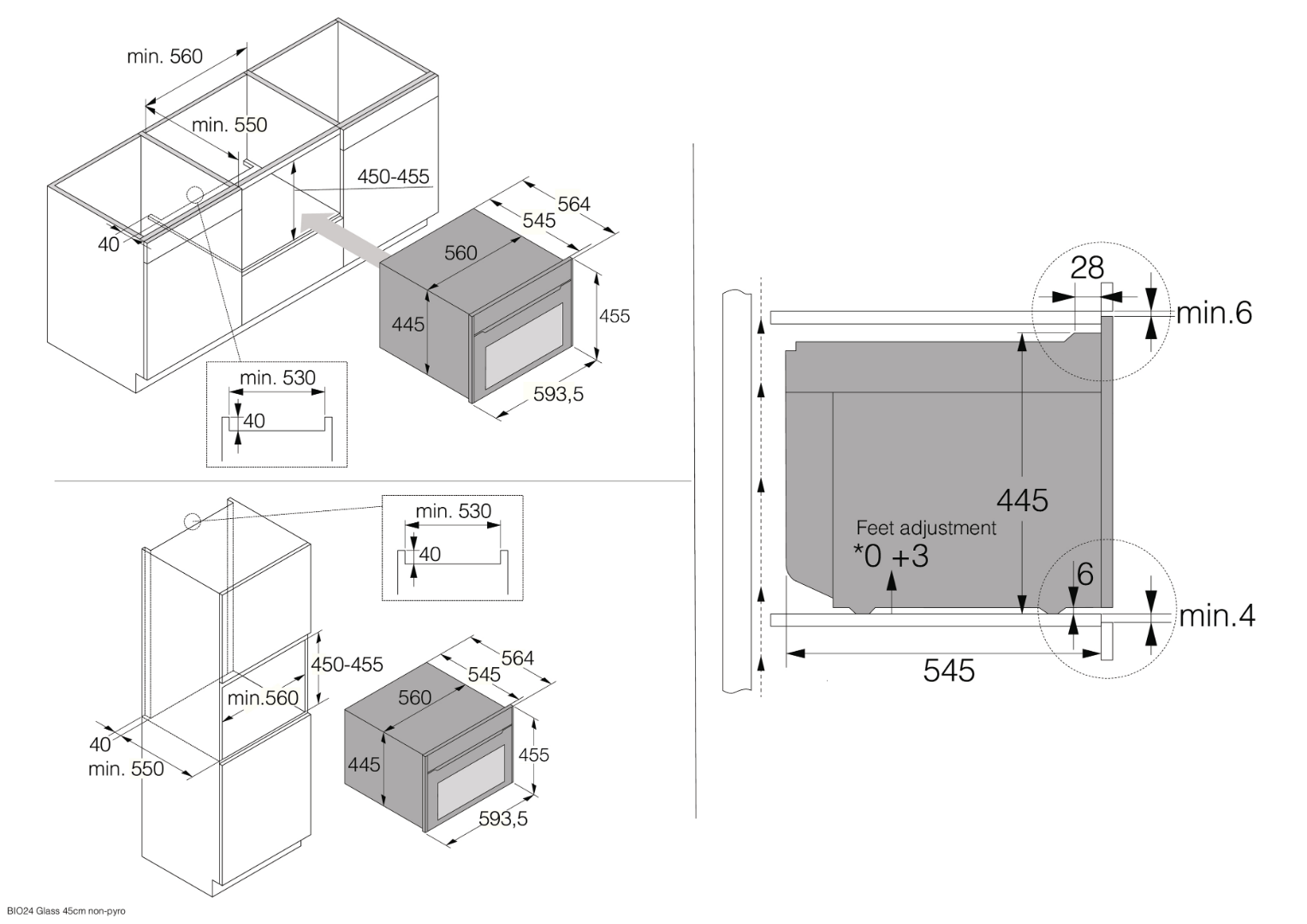 - Размер ниши для встраивания мм.: 450/560/550
