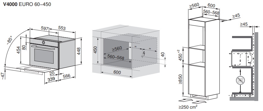 - Габариты ниши для встраивания ВхШхГ, мм: 450х560-568х566