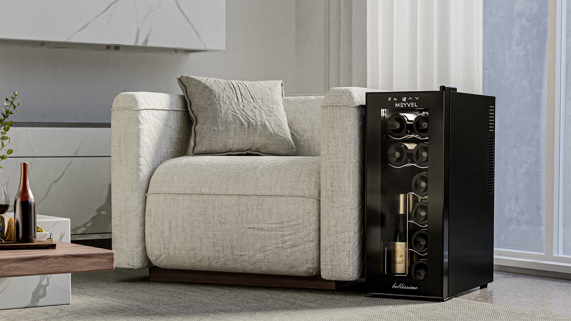Инженеры компании Meyvel разработали новую модель отдельностоящего винного шкафа MV12-TBD1. Благодаря компактным размерам данную модель можно разместить практически в любом помещении. Двойное стекло с защитой от прямых УФ-лучей поддерживает качественные условия хранения вина. Для размещения винных бутылок, шкаф оснащен 3 полками из хромированного металла. Одна из полок имеет возможность хранения бутылок стоя.